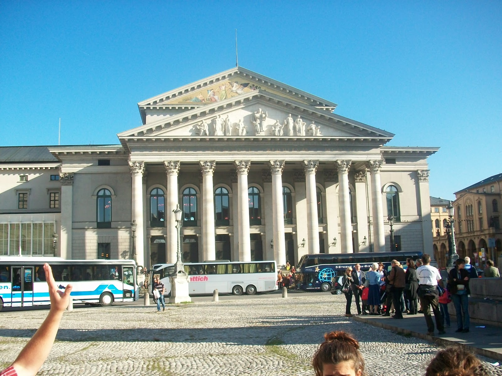 The National Theater - originally a monastery for monks. It burned down and was remade into the theater. The Hofbrauhaus (a famous beer hall) is only a couple blocks from this building. Because they did not have enough water anywhere close to kill the fire, they ran to the Hofbrauhaus and recruited men to pass barrels of beer along a human chain to douse the flames. The men would pass a barrel along and then of course set one aside for themselves. Eight barrels made it and about one hundred-fifty-ish barrels of beer disappeared in the two blocks between the buildings. The monastery burned down.